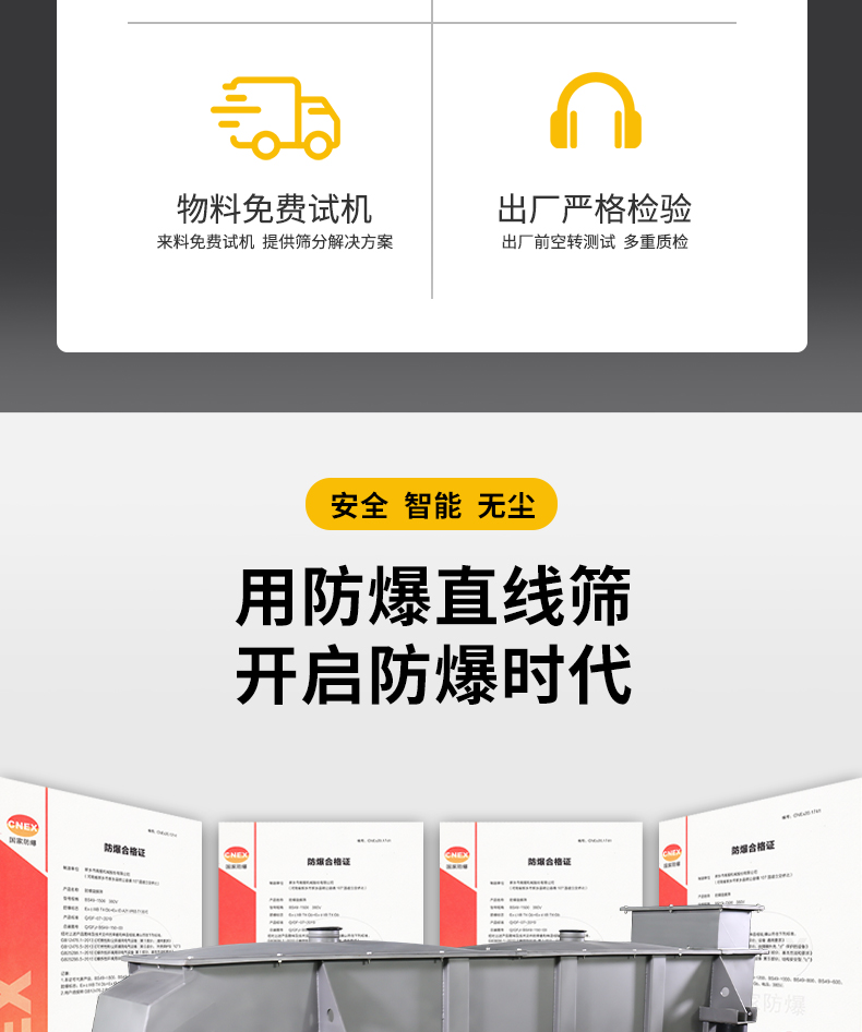 免费在线咨询防爆直线筛是一种效率高、安全的筛分设备,专为易燃易爆环境设计。它采用防爆技术,确保在处理易燃物料时的安全性。