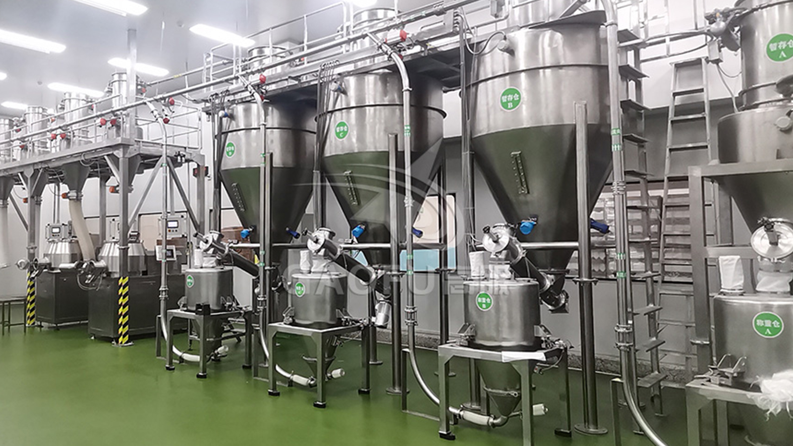 系统可通过控制系统调节输送速度(如螺旋输送机转速、气动压力),适配不同加工设备的面粉需求量(例如面包生产线与饼干生产线的供粉量差异),避免供粉过多导致堵塞或供粉不足影响产品质量。